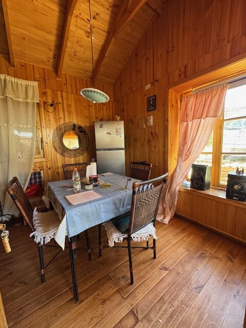 Pintoresca cabaña con vista a la laguna en un entorno de naturaleza y paz , cerca de todo y a la vez inmersa en la naturaleza .