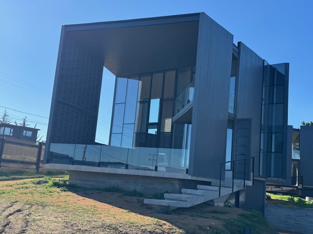 La casa cuenta con 4 dormitorios , 2 baños . living , comedor , estar , Terraza Cubierta con Hot Tub, barandas de vidrio, bodega , tipo de construcción mixto : hormigón, estructura metálica y madera