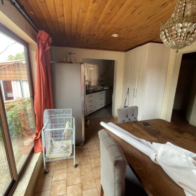 La casa principal, construida en material sólido, ofrece 123 m² distribuidos en cuatro dormitorios y dos baños, con excelente iluminación natural y un diseño de un piso que facilita la habitabilidad.