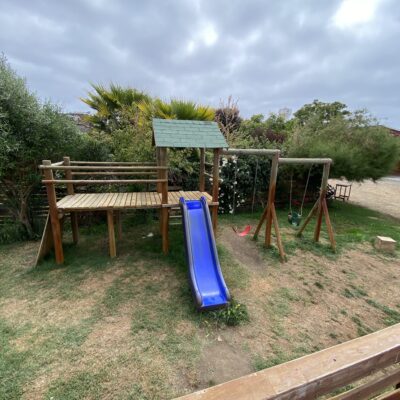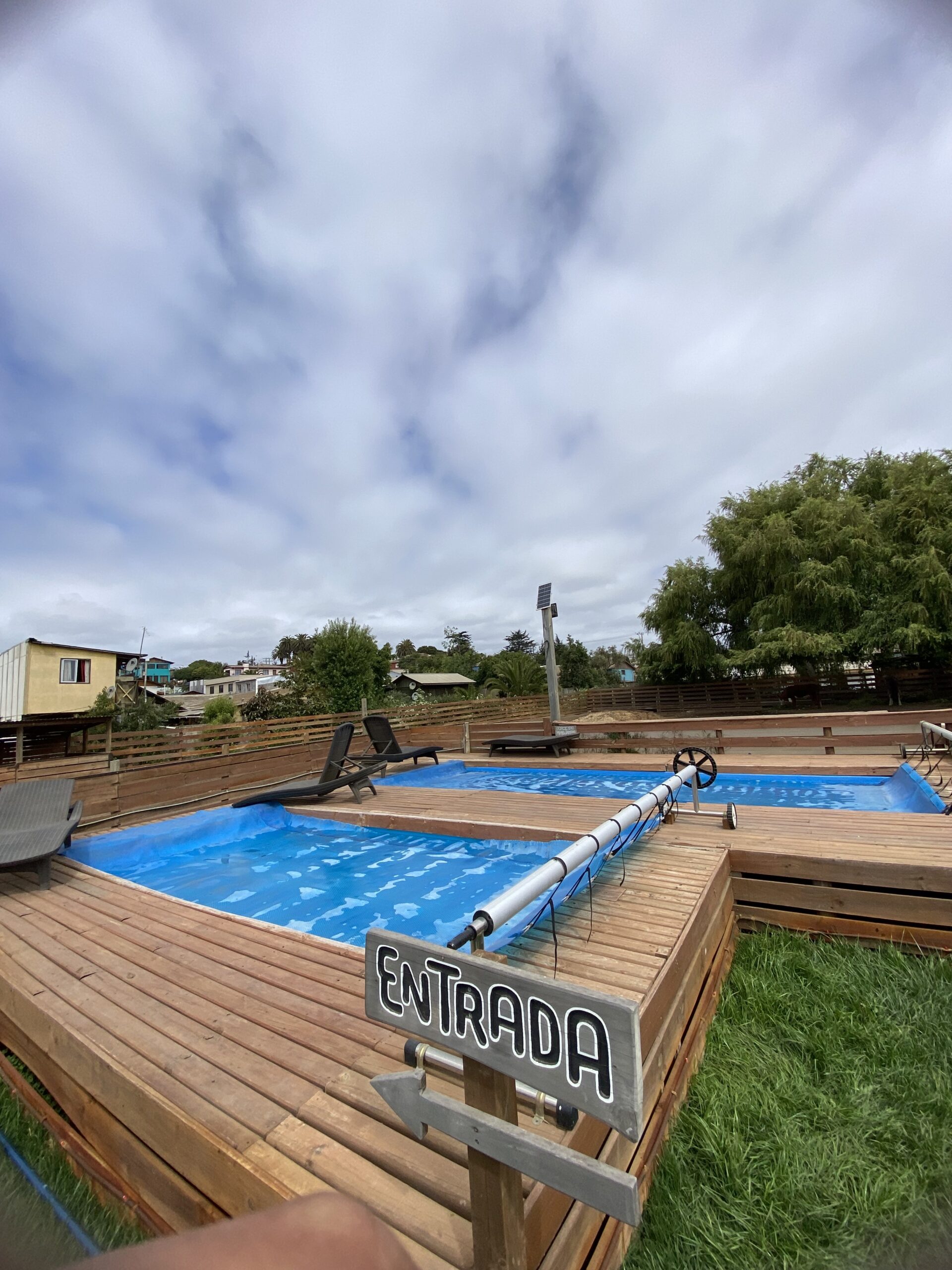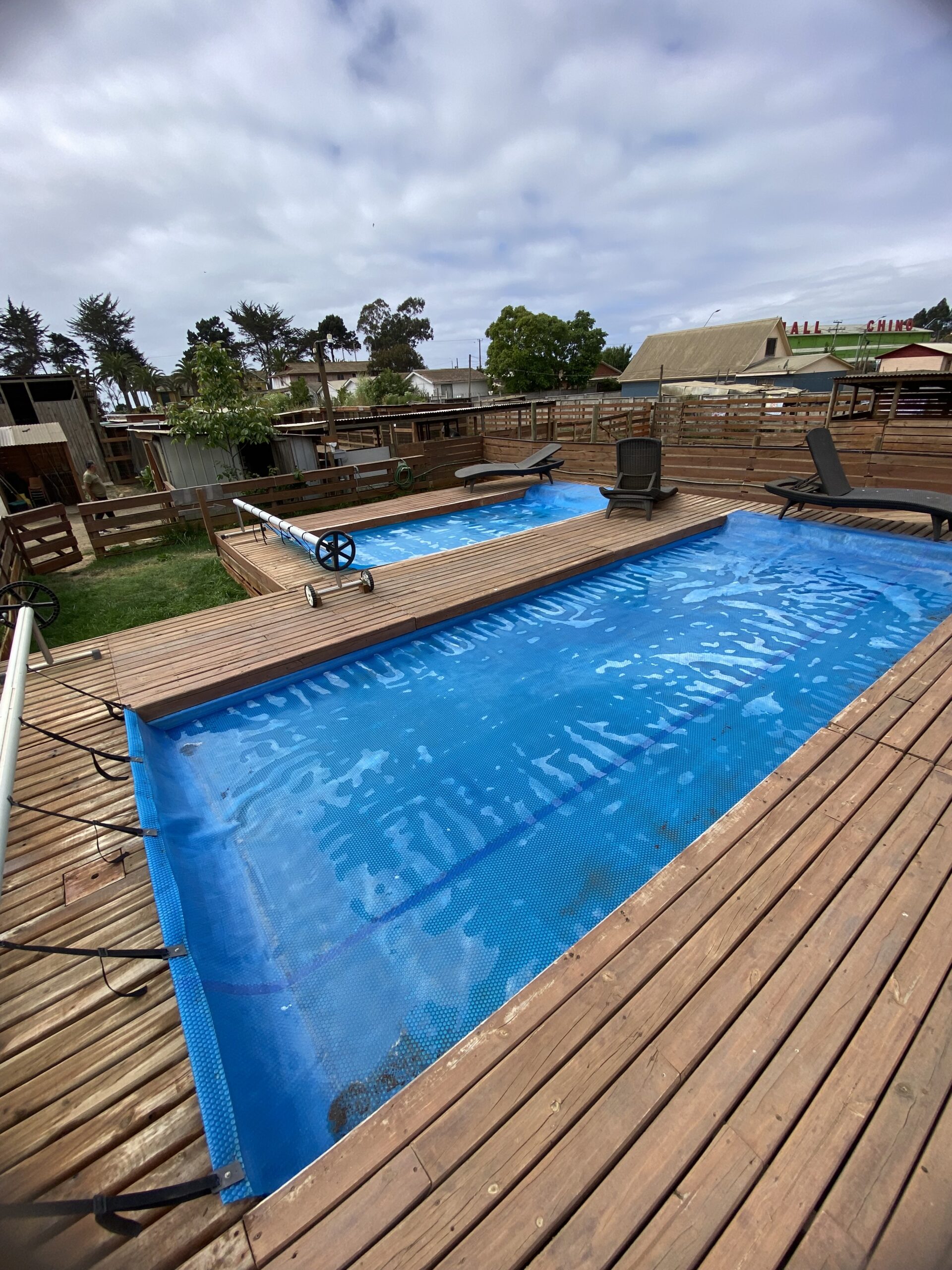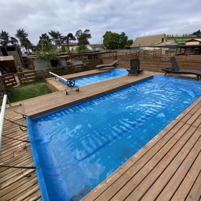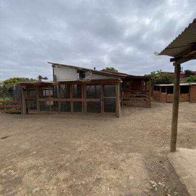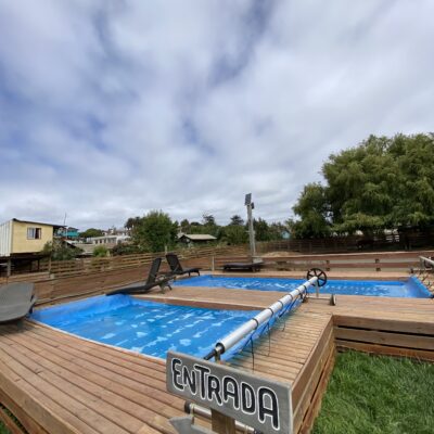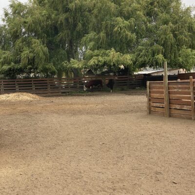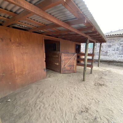 El terreno cuenta además con un quincho cerrado de 7×4 metros, dos piscinas temperadas (7×3 y 5×2,5), 15 corrales para animales, baños públicos, un mini parque infantil y amplias áreas exteriores que ofrecen múltiples posibilidades de uso. La propiedad dispone de alcantarillado, dos empalmes eléctricos y un diseño que permite operar distintas actividades simultáneamente.