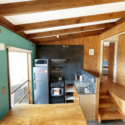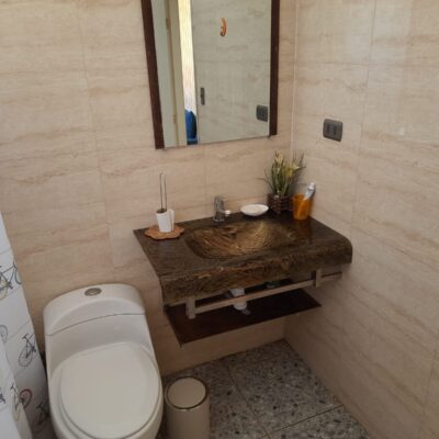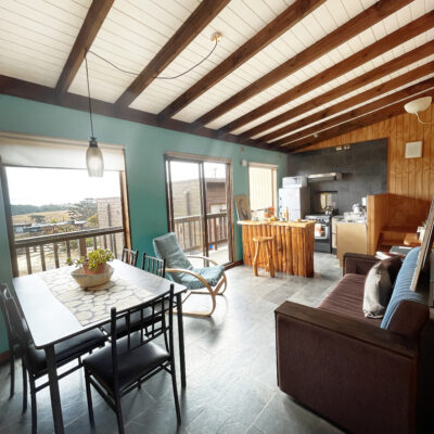 La vivienda principal cuenta con espacios luminosos, incluyendo sala de estar, living, comedor, cocina, 4 habitaciones, un baño en suite y 1.5 baños, además de una terraza sobre cubierta que ofrece vistas impresionantes al mar. Cada cabaña sigue un diseño arquitectónico con living-comedor y cocina en el primer nivel, y 2 habitaciones y 1 baño en el segundo nivel.