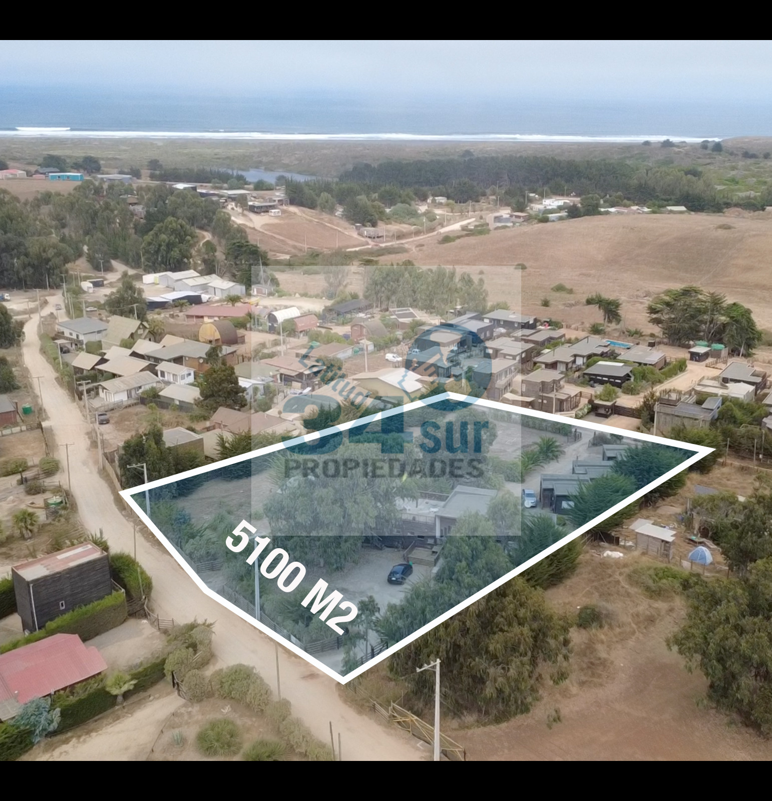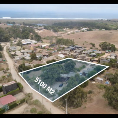 El terreno de 5100 m2, de forma regular y suave pendiente con orientación por poniente, destaca por su entorno verde y vista al mar desde la vivienda principal y la superficie más elevada del terreno. La propiedad cuenta con dotación de agua mediante conexión a red privada, electricidad de la compañía CGE y alcantarillado particular. Situada en una zona de extensión urbana de segunda prioridad, presenta buenas condiciones de conectividad y accesibilidad.