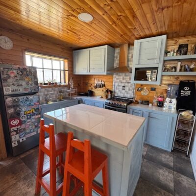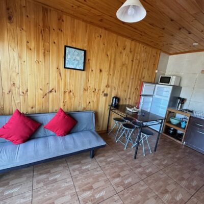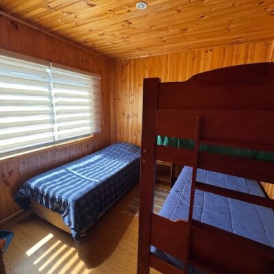 3 cabañas de 40m2 cada una, todas con 2 dormitorios, living-comedor y 1 baño.