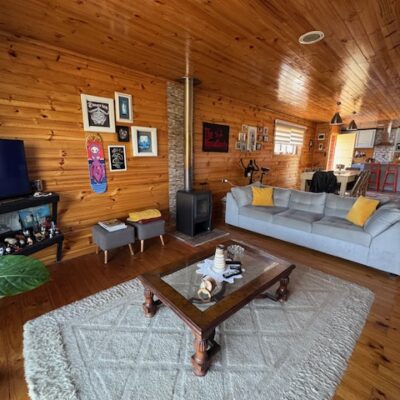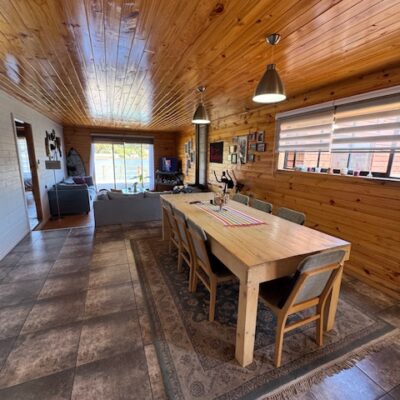 1 Casa principal, de 120M2 con vista a la laguna, con living comedor y cocina americana, 4 dormitorios, 2 baños y Logia