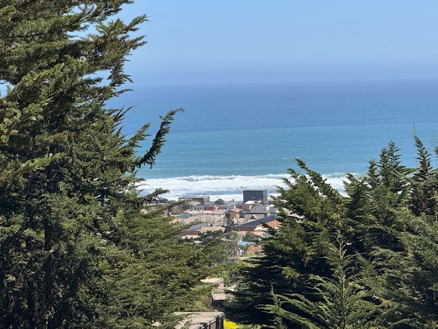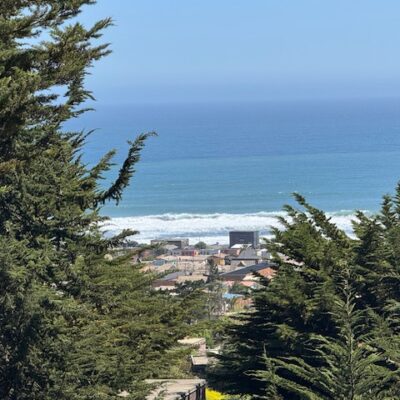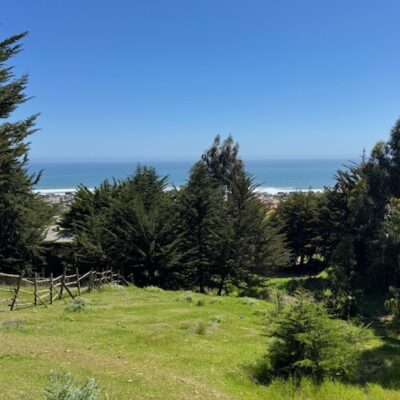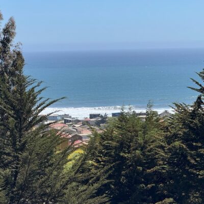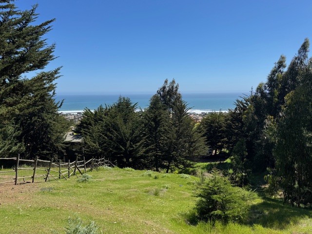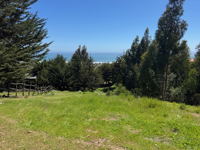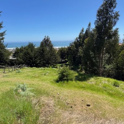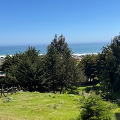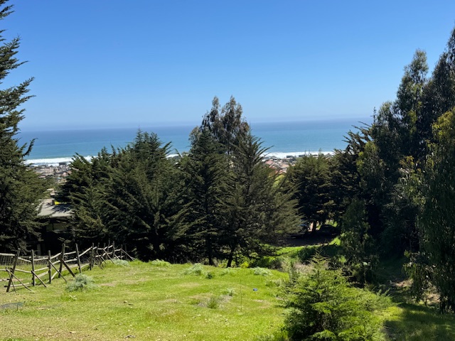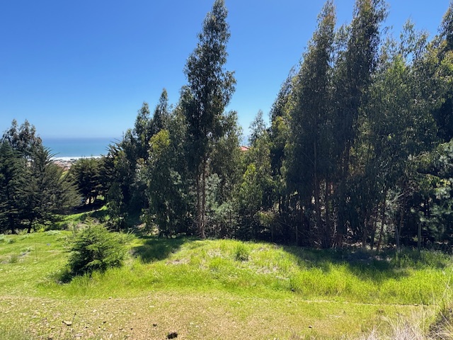 Factibilidad de luz . Terreno con quebrada natural y vegetación con la vista al mar .
